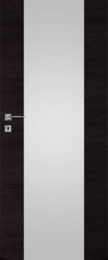 Vratno krilo je izdelano iz 8 mm debelega kaljenega stekla. Steklo je lahko prozorno, satinirano ali s peskanim vzorcem po izbiri. Na Levi in desni strani je les v barvi podboja.